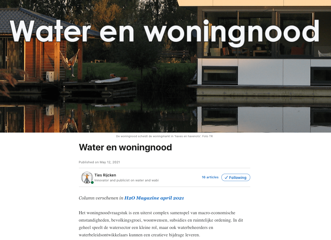Het is de week van ons water, water is niet alleen om te drinken, maar ook om op te wonen! Artikel van Ties Rijcken Dit is wat we willen, betaalbare waterwoningen! Waterwonen is bovendien sinds dit jaar erkend als immaterieel erfgoed en dat in de #weekvanonswaterBovendien is er economische waarde: 1000 woningen leveren hier minstens 150 miljoenMeer lezen over “Week van ons water 1 t/m 16 mei,”
