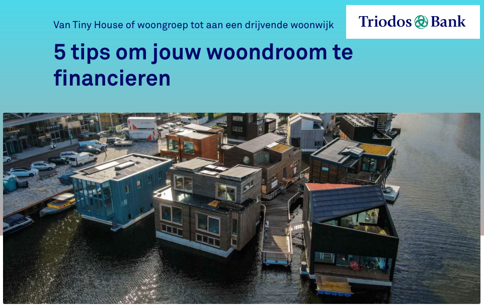 Triodos bank -de kleur van geld Van Tiny House of woongroep tot aan een drijvende woonwijk, ook de betaalbare, voor wie wil waterwonen, er zijn complete( tiny)waterhouses te koop Of zelf bouwen is ook leuk, neem het initiatief bij je gemeente, als je je waterdroom wilt verwezenlijken. waterwonen is tenslotte nu immaterieel erfgoed. Dit betekentMeer lezen over “Drijvend Particulier Opdrachtgeverschap”