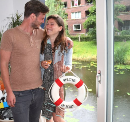 Buiten – heel camping style – gin-tonics drinken is nu al onze favoriete herinnering hier’‘Hoe dan?! Hoe krijg je het in vredesnaam voor elkaar om een woonboot te huren in Utrecht?’ “Vooral een kwestie van geluk”, vertelt Maria. “ Menig Utrechter droomt ervan om op een woonboot te wonen. Was dat voor Remy en Maria ook het geval? “We hebben wel eens tegen elkaar gezegd hoe leuk het zou zijn om op het water te wonen. “Zeker omdat we beiden als kind veel gevaren hebben. We gingen allebei vaak met de boot op vakantie.” Remy: “Water geeft een bepaalde rust. Daarbij genieten we hier van een stukje natuur in de stad.”